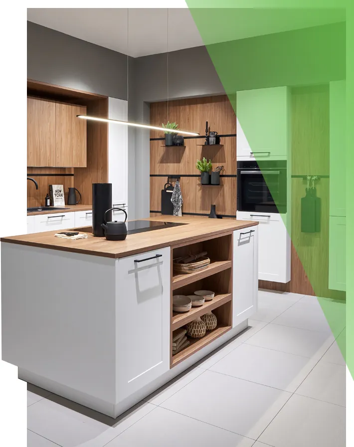 Unsere erfahrenen Handwerker setzen Ihre Traumküche mit höchster Präzision und Sorgfalt um. Wir koordinieren alle Gewerke, wie z.B. Elektriker und Installateure, und sorgen für eine termingerechte und fachgerechte Montage Ihrer Küche. Auf Wunsch gestalten wir auch den gesamten Küchenraum, inklusive Wänden, Decken und Beleuchtung. Wir schaffen eine harmonische Atmosphäre, in der Sie sich wohlfühlen werden.